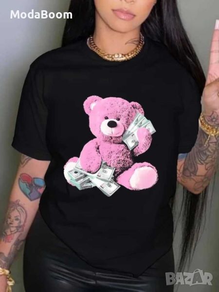 ПРОМОЦИЯ🏷️Дамска тениска за пролет и лято с къс ръкав, кръгло деколте и принт на мече🐻 → Обява 46347634