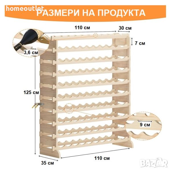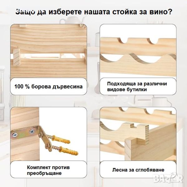 Стойката за вино се сглобява за минути, всички необходими части са включени в комплекта.