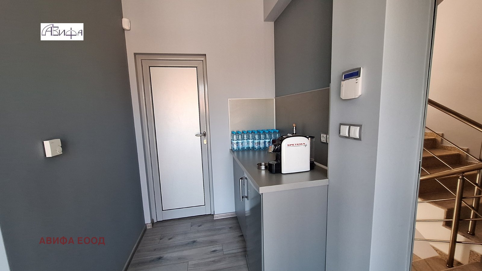 Помещението е ситуирано на първият етаж над партера в сградата и заема площ от 90 кв.м. Напълно е завършено с гранитогрес, фаянс, инсталации, вентилации. Има собствена тоалетна и малък бокс подходящ за отдих. Оборудвани са осем работни места с Интернет, окабеляване с 10 контакта на бюро, два стенни шкафа и друго оборудване . Подходящо е за дейности като счетоводна, IT и друга.