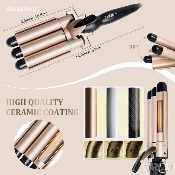 - [Подходящ за всяка прическа]: дълга или къса, гъста или тънка, всички могат да бъдат накъдрени ефективно. Керамичните къдрици произвеждат отрицателни йони, за да създадат меки, блестящи вълни без никакво накъдряне