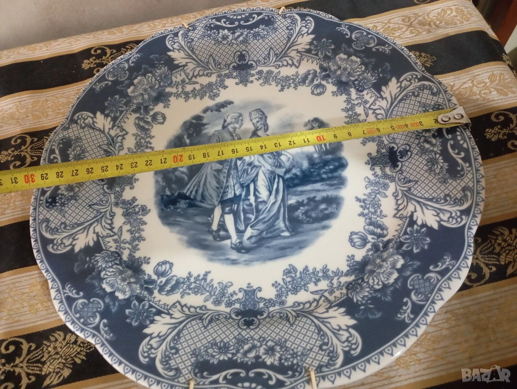 Декоративна чиния с мотив, известен като "Watteau". Този стил на изобразяване на галантни сцени на открито е кръстен на френския художник Антоан Вато.