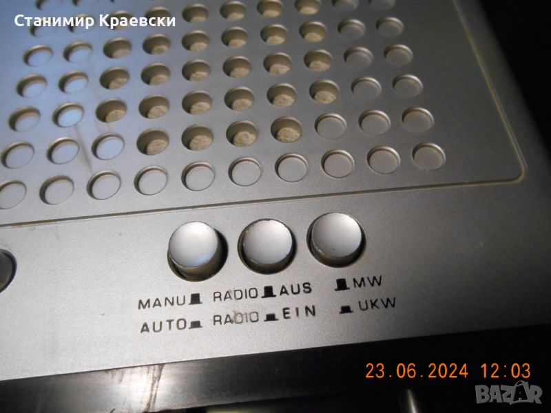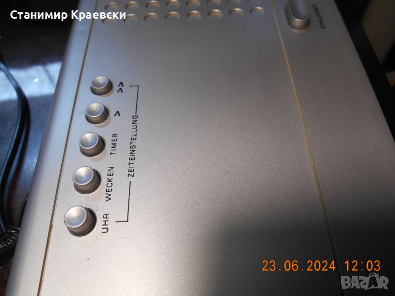 Радио часовника работи без проблеми Много добър външен вид Редовни тримери Осветена скала Димер страничен за яркоста на часа Добра селективност на радиото но за съжаление по него време е било UKW то е до 104 Има и изход за слушалка - моно