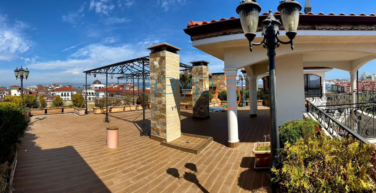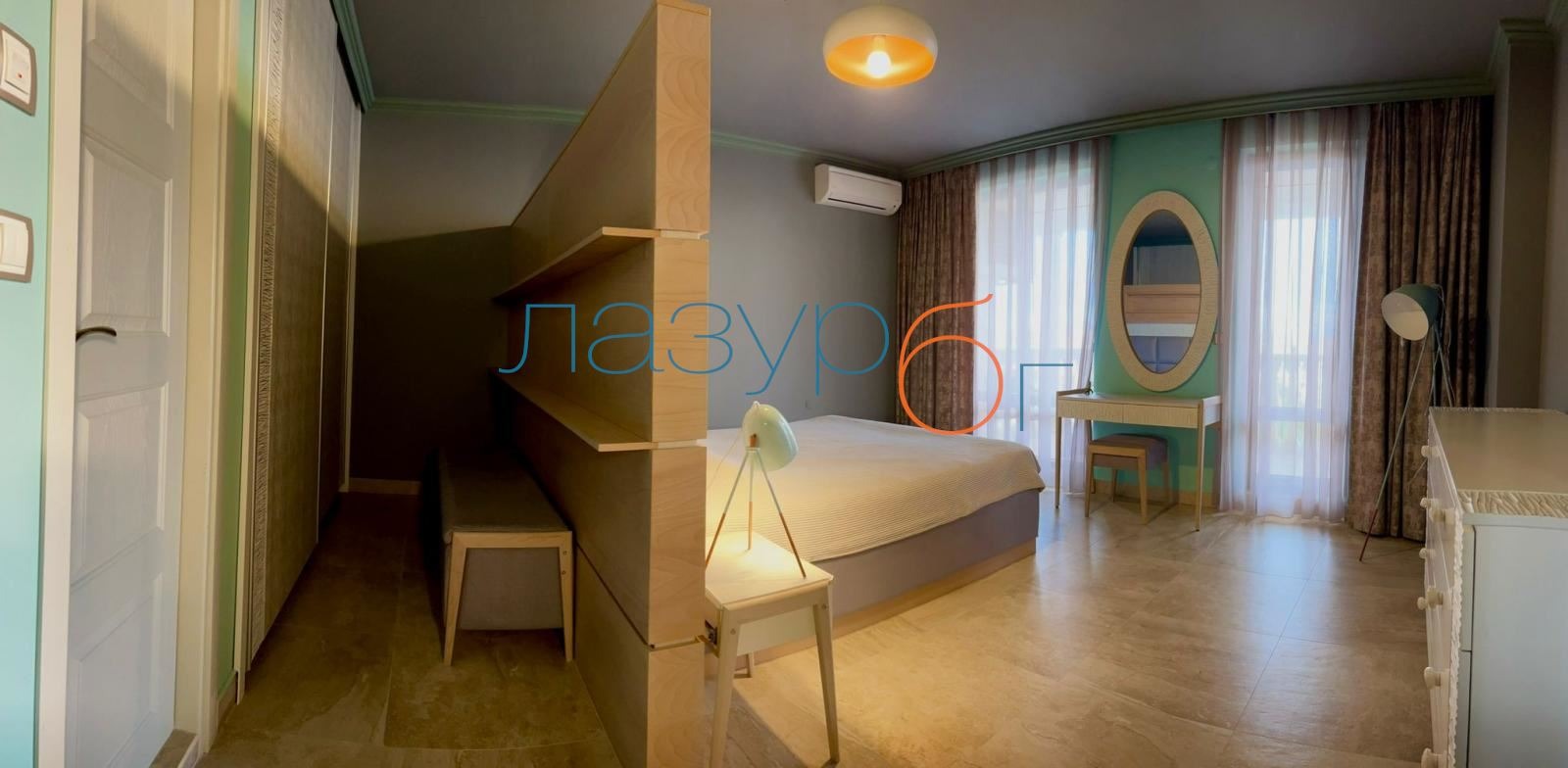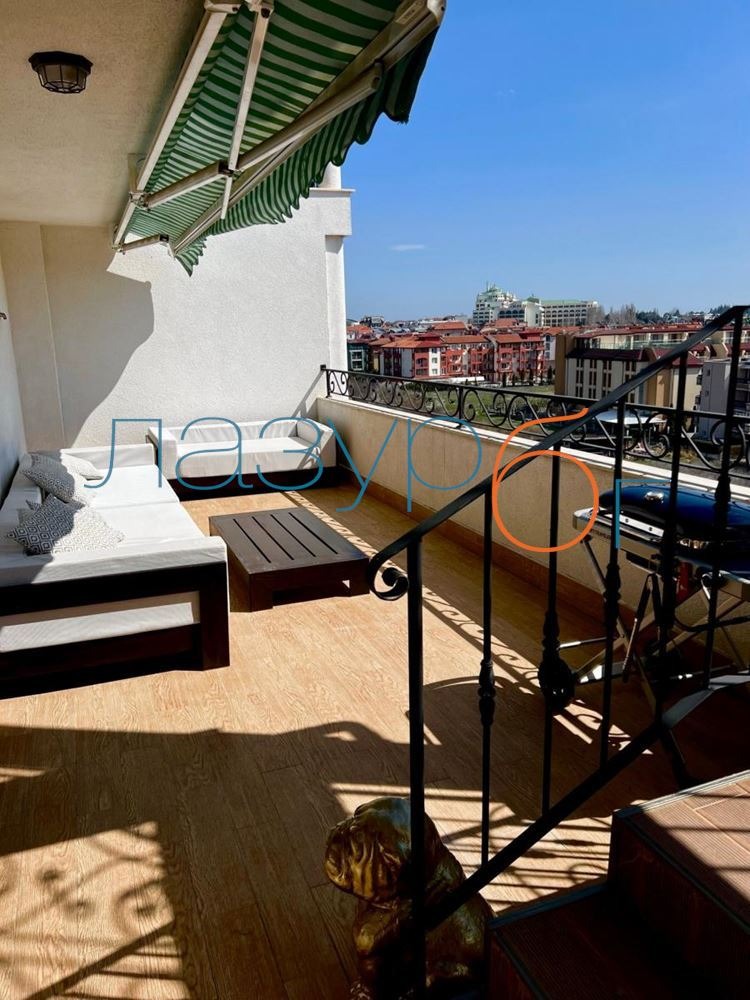 Агенция за недвижими имоти Лазур БГ предлага за продажба огромен пентхаус с гледка море в затворен комплекс с 3 басейна на 5 минути пеша до плажа. На територията на комплекса има няколко детски площадки, детски зали, тенис корт, СПА салон, рехабилитационен център, балнеологичен център, ресторанти.