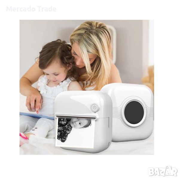 Мини принтер Mercado Trade, За деца, А33, Bluetooth, USB зареждане, Бял
