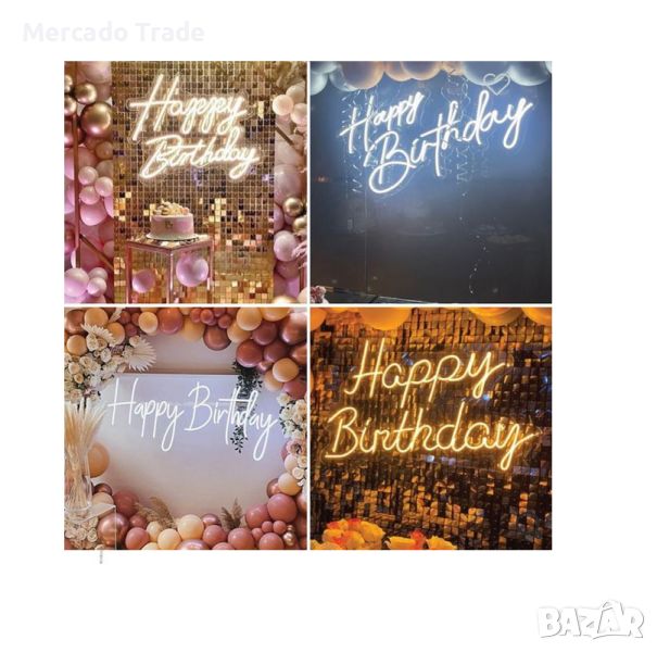 Светещ панел Mercado Trade, LED неонов "Happy Birthday" → Обява 46352225