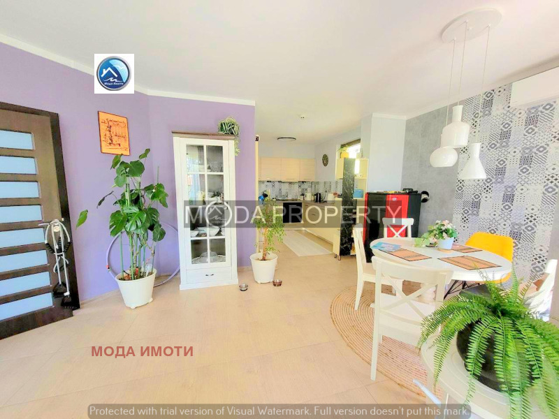 Този имот се радва на отлично местоположение, което гарантира спокойствие и уединение. Интериорът на къщата със своите 143 кв.м. е внимателно разпределен на два етажа, удобни спални, модерни бани с душ и вана, полуотворена кухня, която елегантно се интегрира с просторната всекидневна и трапезарията и обширни външни площи.Имота е с климатици, камина и парно за цена от 216 890 Е.