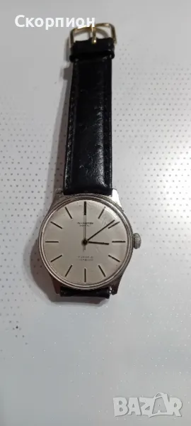 Часовникът е със 17 рубина и е с инкаблок. В перфектно работещо състояние с извършена профилактика - почистен и смазан.