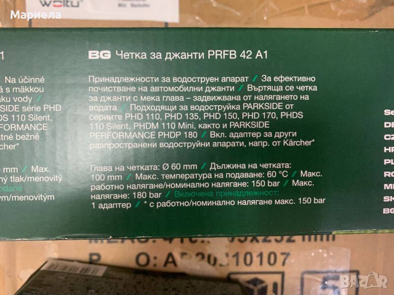 Четката е закупена от разпродажба и е нова и запечатана от производител .Съвместима с PHD110 , PHD135 , PHD150 , PHD170 , PHDS110SILENT , PHDS110MINI , PARKSIDE PREFORMANCE PHDP180 .Съвместима и с Karcher .Има включен адаптер за свързване с водоструйката .