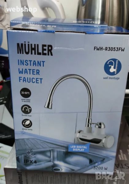 Водонагревател с дисплей и гъвкав чучур, 3000W, монтаж на стена, MUHLER FWH-3053FW