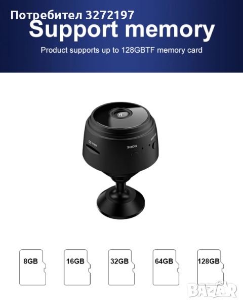 - Тази безжична IP камера може да работи на WiFi (само 2,4 GHz WiFi) или без WiFi. Когато работи без WiFi, поставете Micro SD карта (SD картата не е включена) и включете, камерата ще записва и записва видео файловете на SD картата (SD картата не е включена).