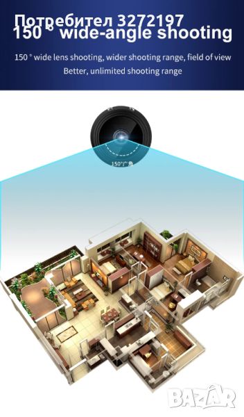 С ъгъл на видимост от 150 градуса, камерата осигурява широк обхват на видимост във вашата стая. Позволява ви да знаете всяко движение, случило се във вашата къща по всяко време и навсякъде.