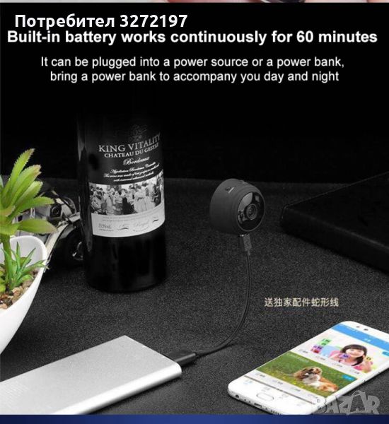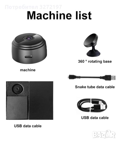 Тази малка камера с твърд кабел за зареждане и основа, когато зареждате по време на запис, можете ръчно да завъртите ъгъла на запис на 360 градуса.