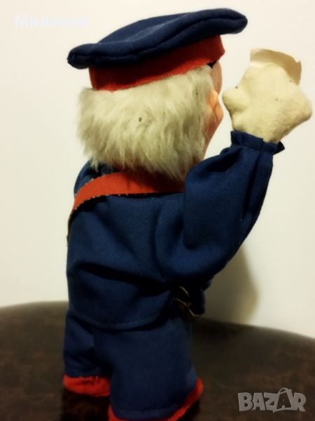 Стара механизирана играчка, предполагам английска.Пощальонът движи ръката, с която държи писмо.Има ключе, и се навива.Работи, в пълна изправност.Височина-24 сантиметра.За клипче може да ми пишете във Вайбър