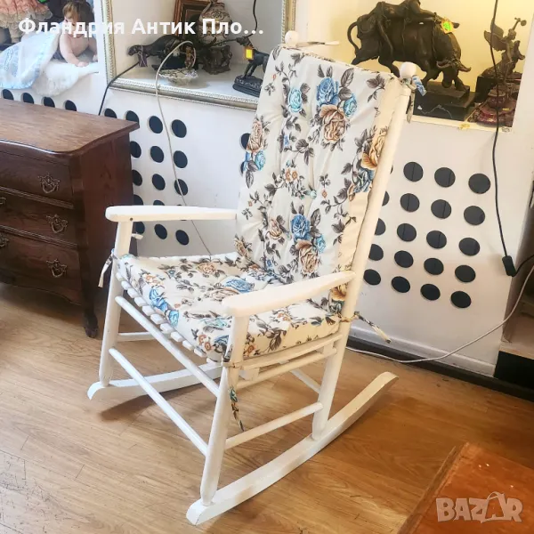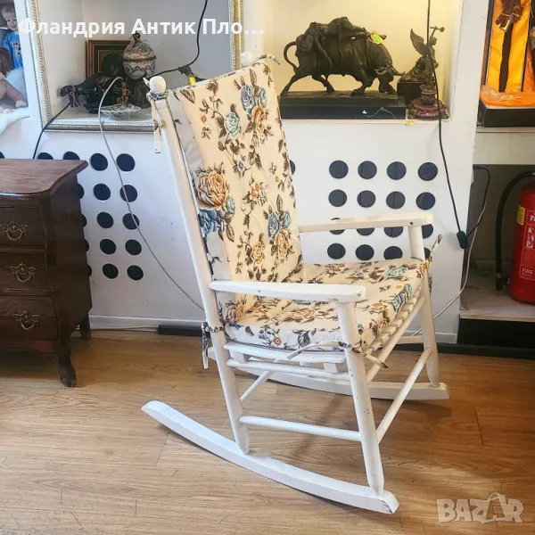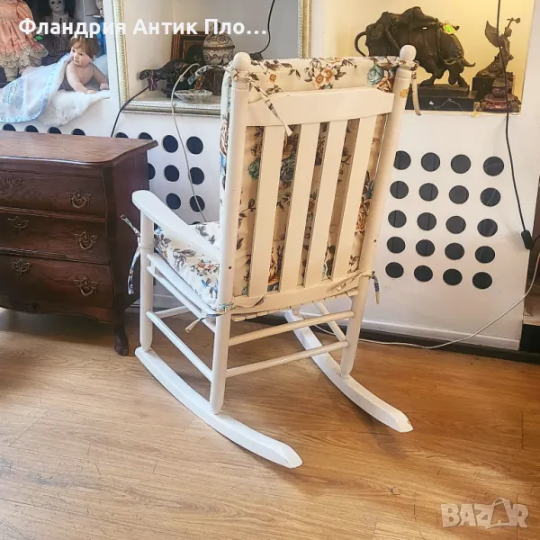 Подарете си мигове на спокойствие с този елегантен дървен люлеещ стол в бял цвят.