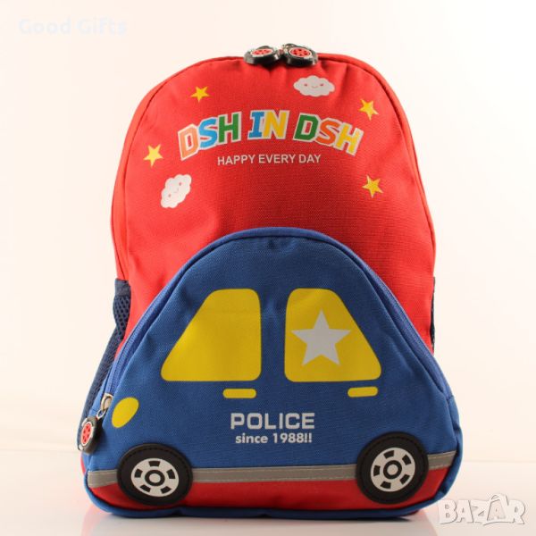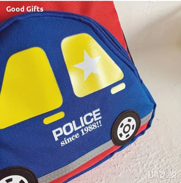Детска раница Полиция, Червена със синя полицейска кола → Обява 46362312