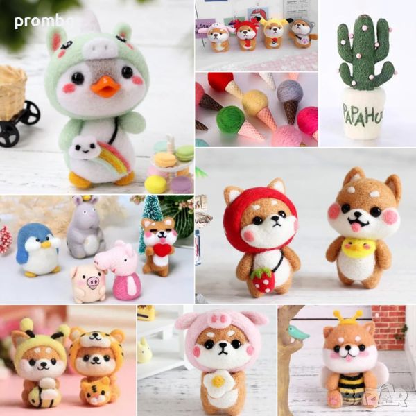 хоби комплект за плъстене с вълнени топчета, ръкоделие