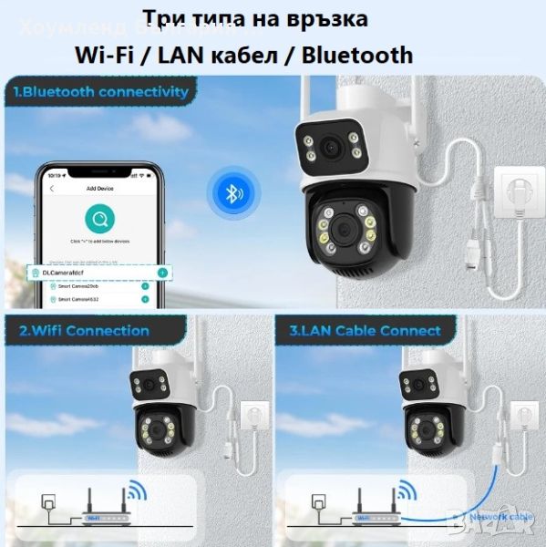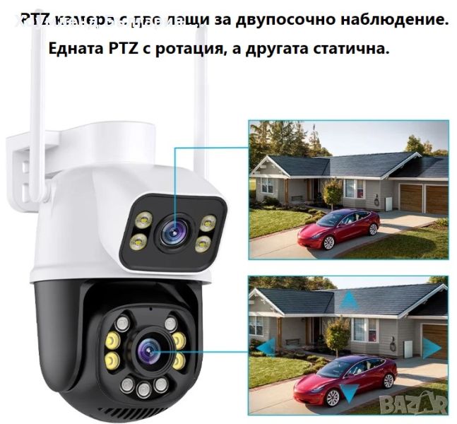 - Двойна Wi-Fi PTZ камера за външно видеонаблюдение през телефон;