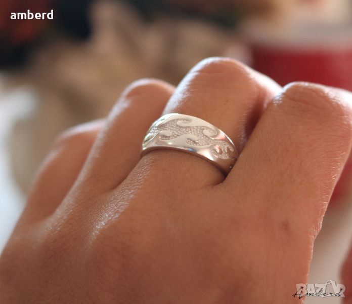 Нежен и елегантен пръстен, изработен от сребро проба 925. Вътрешен