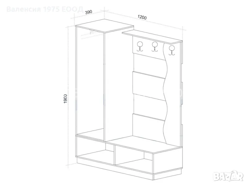Портманто с две вратички, три двойни закачалки и гардероб с огледало.