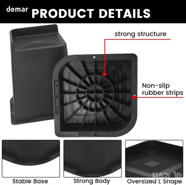 Поставките за легла MYMULIKE повдигат матраците с 5 сантиметра за допълнително съхранение под леглото, поддържайки до 270 килограма с издръжлива ABS пластмаса и вътрешна мрежеста структура за стабилност. Голямата контактна площ 12,7х12,7 сантиметра с пирони за захващане осигурява здраво захващане на матрака и рамката на леглото. L-образният дизайн пасва на различни видове легла и не изисква инструменти за монтаж. Тези щрангове не само улесняват съхранението и почистването, но също така подобряват стойката, намаляват болките в гърба и напрежението в коленете и подобряват качеството на съня.