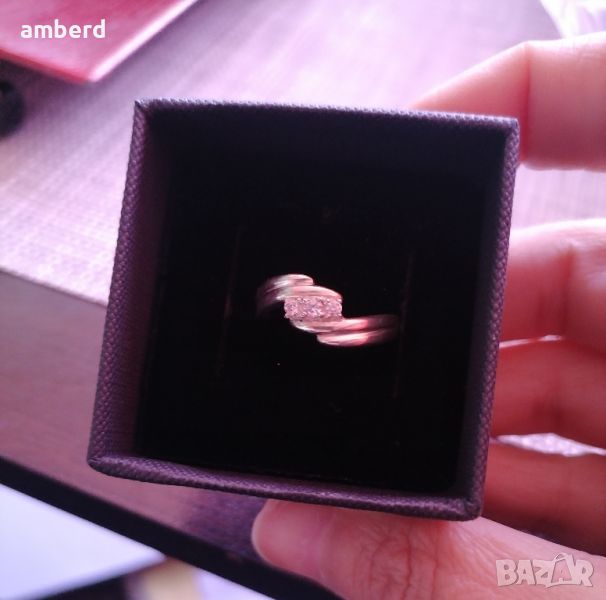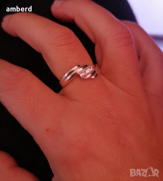 Елегантен и стилен пръстен, изработен от сребро проба 925 и 3 бели циркония. Вътрешен диаметър 17.5мм. Можем да ви изработим този модел в желан от вас размер.