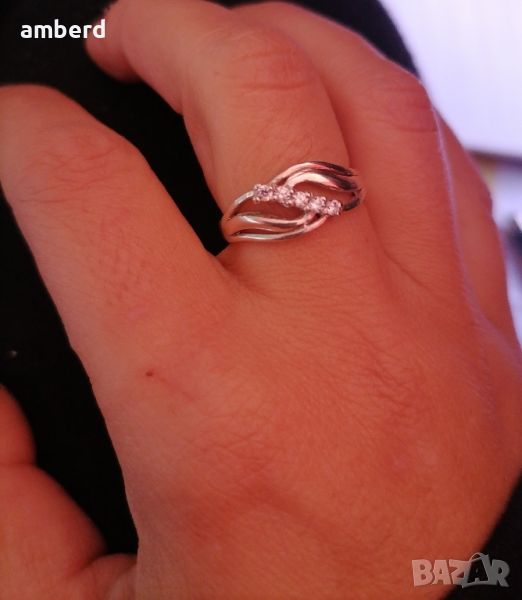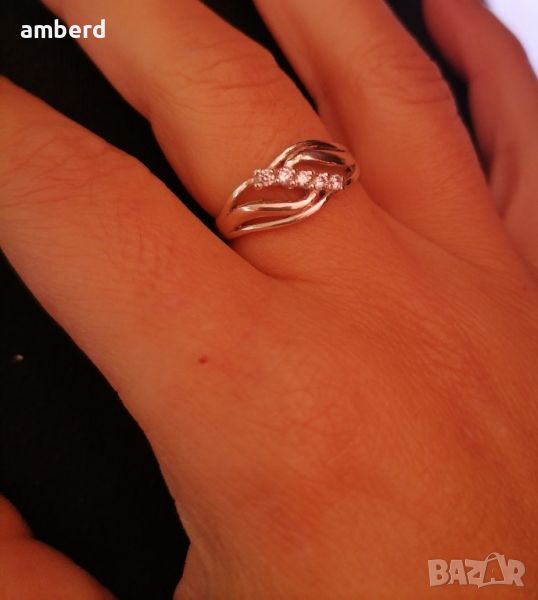 Страхотен пръстен, изработен от сребро проба 925 и 5 бели циркони. Вътрешен диаметър 17.8мм.