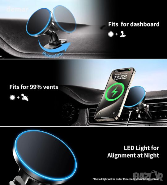 BHHB Mag safe зарядно устройство за кола, 15W 2 в 1 за вентилационен отвор/табло