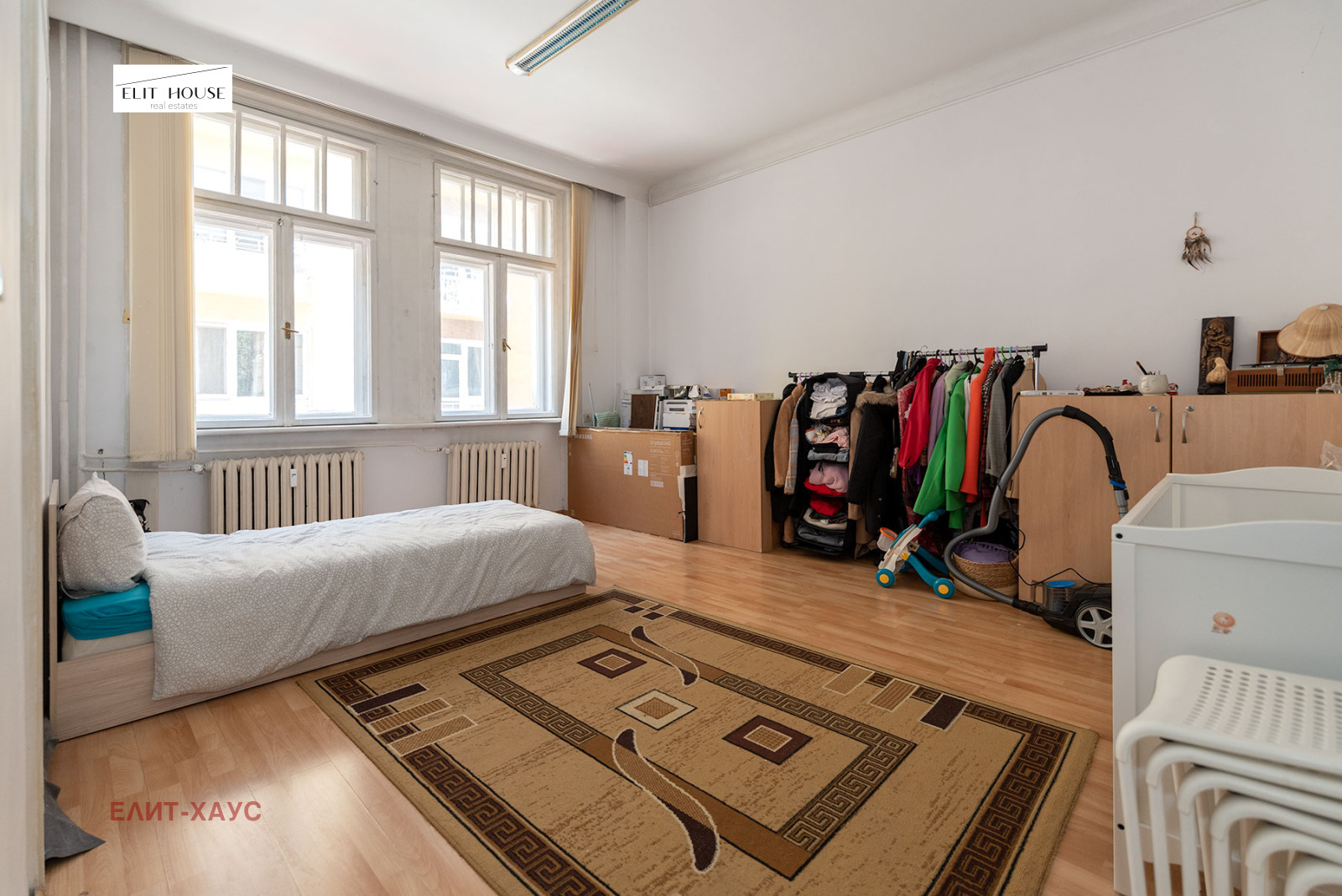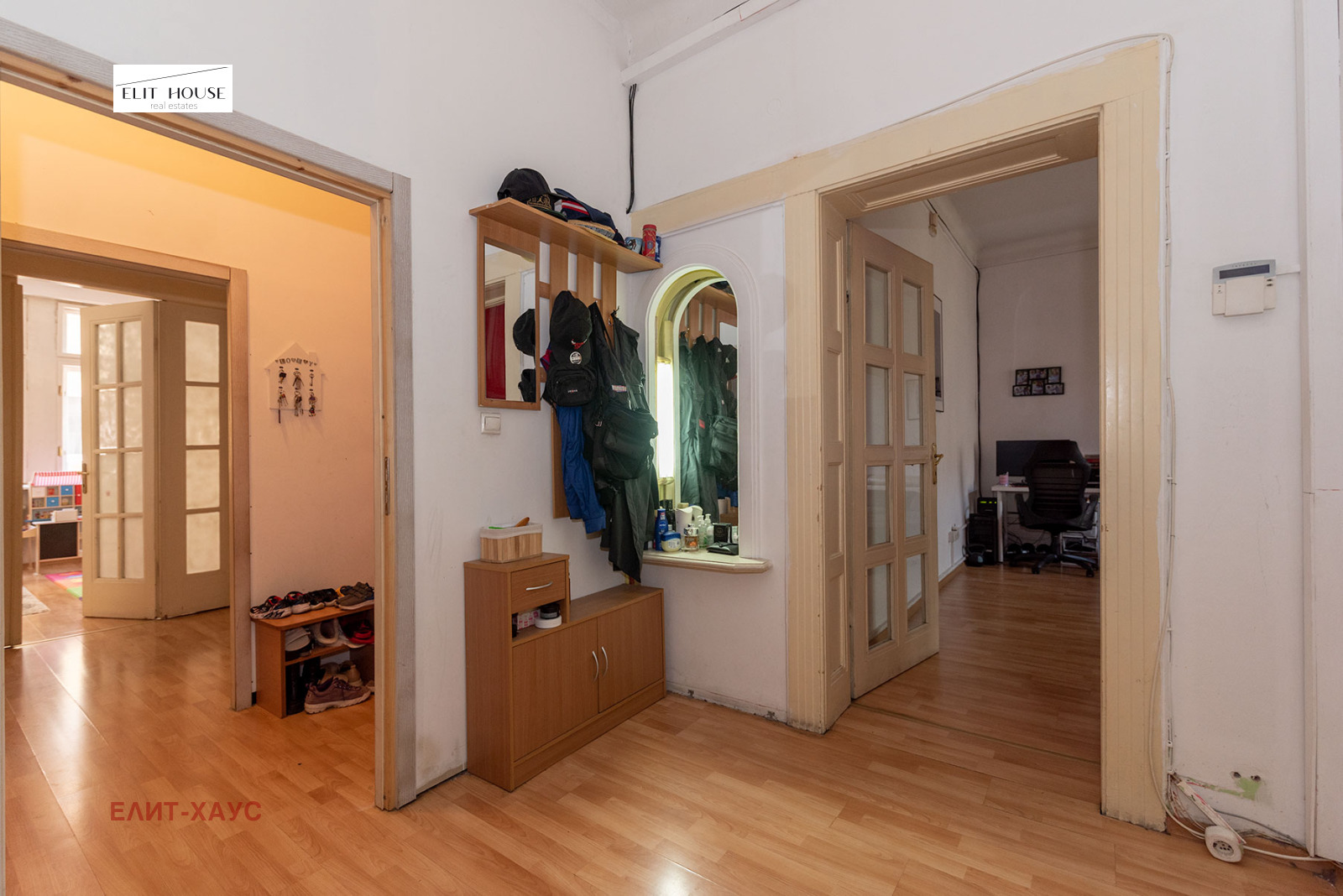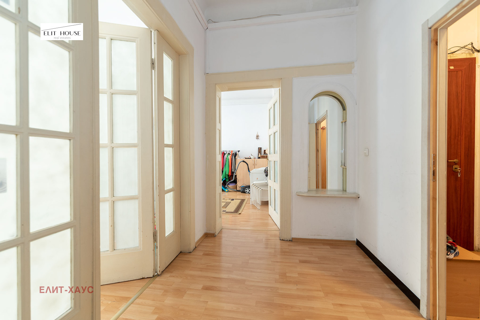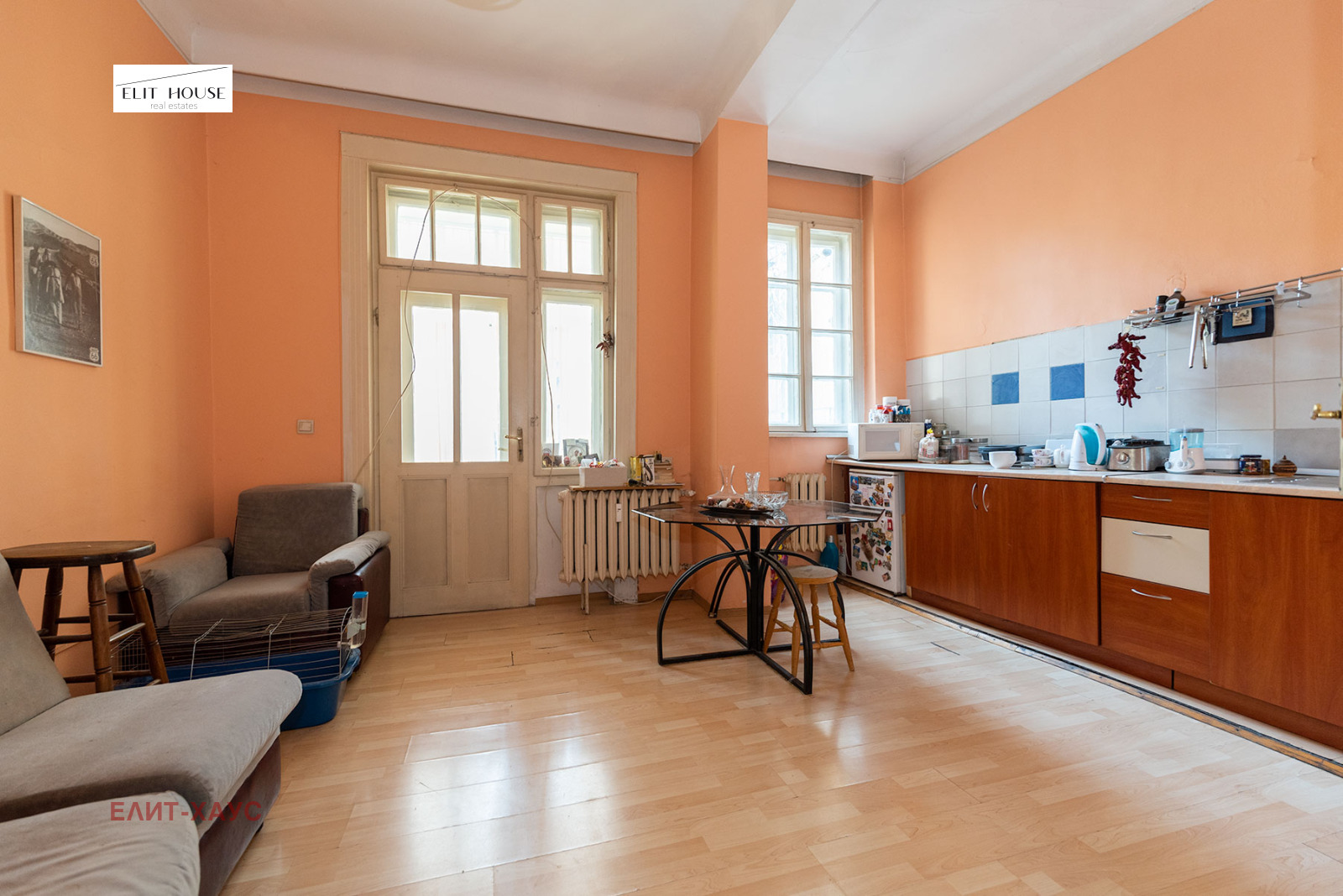 Елит Хаус представя за продажба красив самостоятелен етаж в сграда архитектурен паметник, в непосредствена близост до ул. Солунска и градинката на бар Паваж, жилището е разположено на първи етаж над магазини и представлява: обширен холен вестибюл състоящ се от три преходни портални помещения, голяма самостоятелна кухня с трапезария , две бани с тоалетни, 4 спални помещения и две красиви тераси към вътрешния двор на къщата, височината на помещенията е 3.6 метра, имота има възможност и за разделяне, за повече информация на посочения телефон: 0886100882