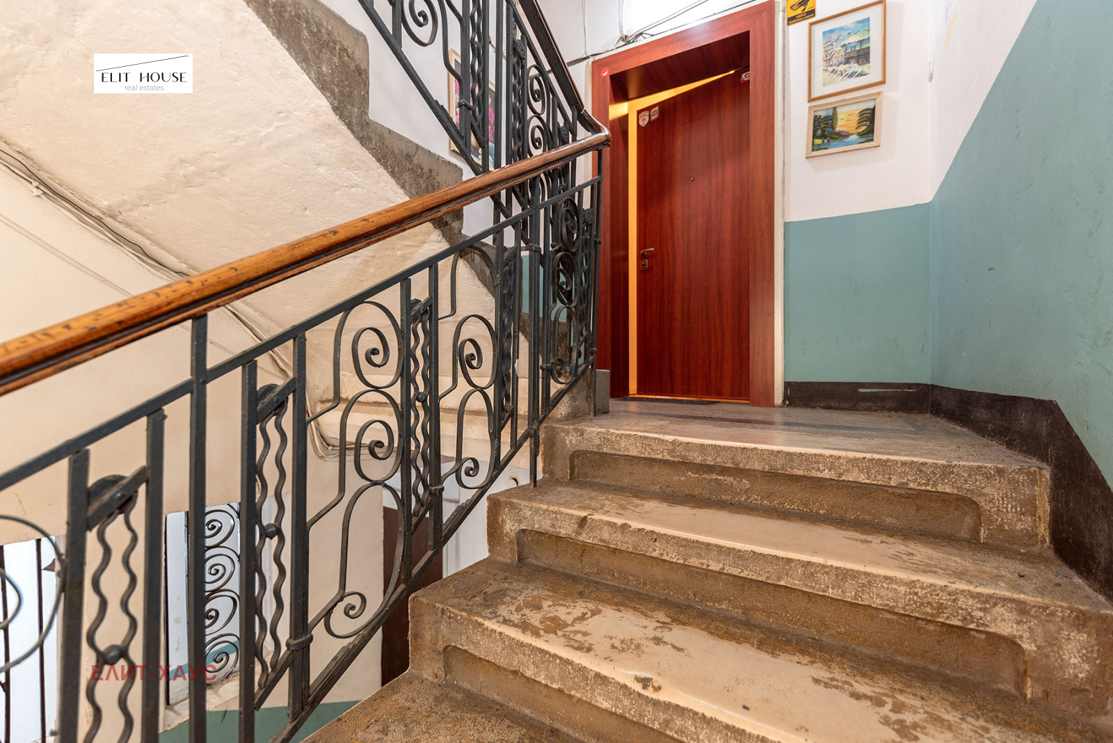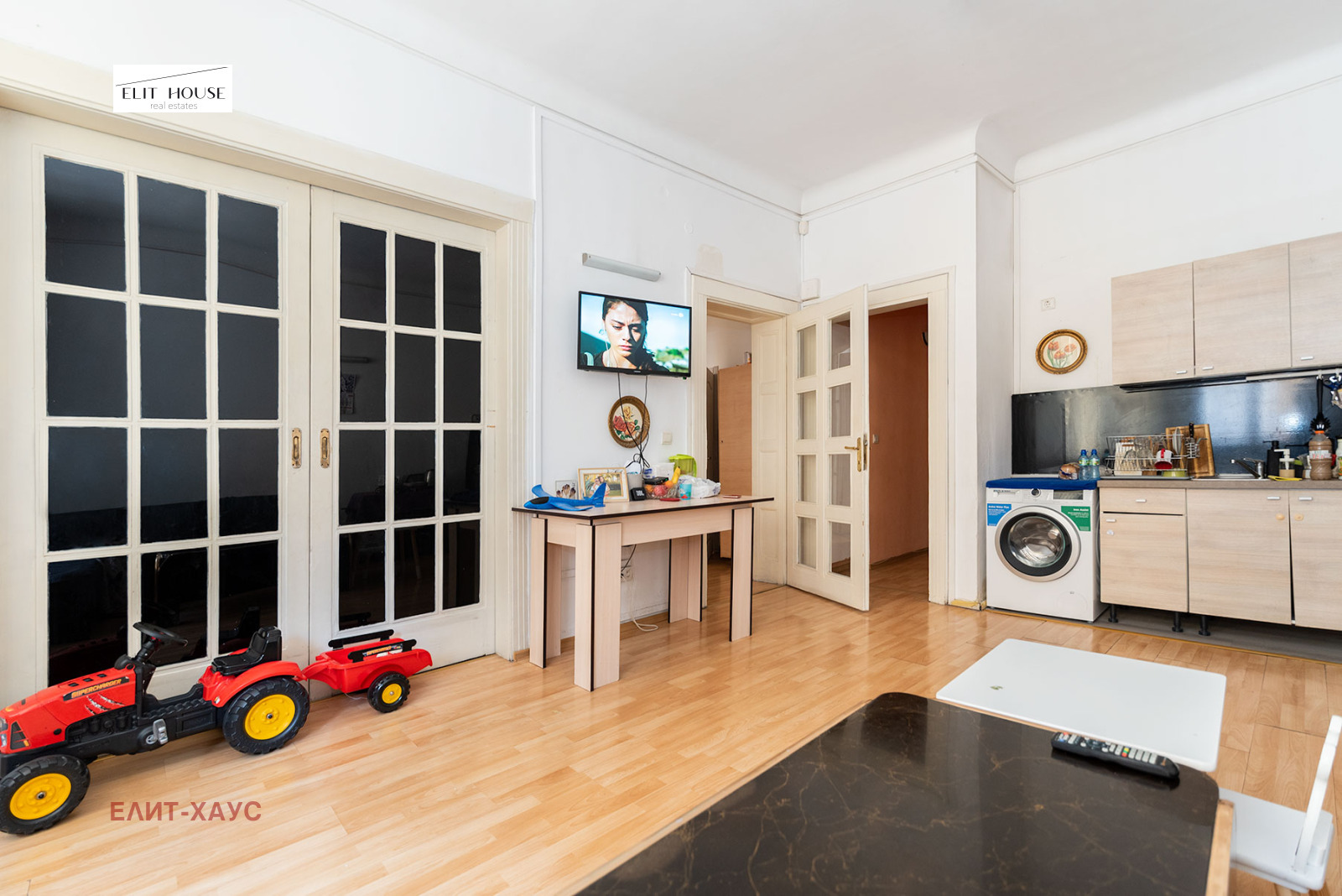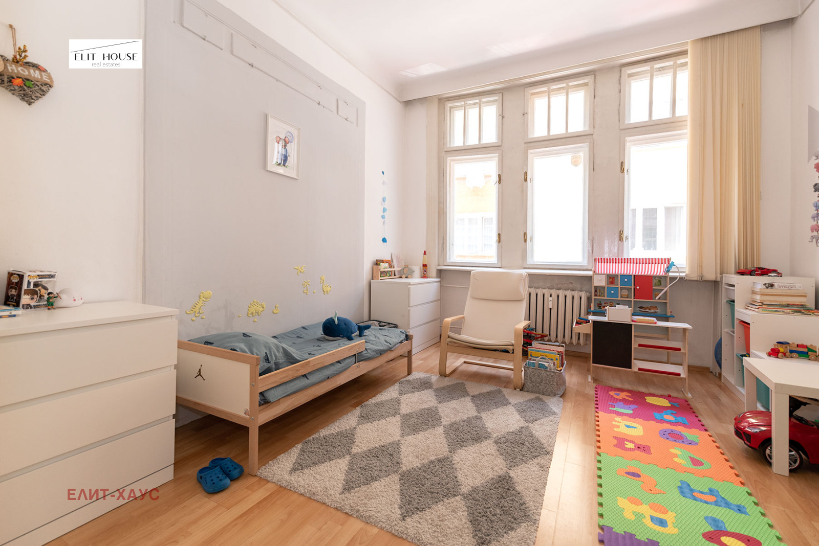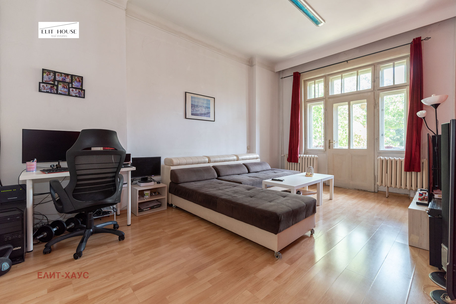 Елит Хаус представя за продажба красив самостоятелен етаж в сграда архитектурен паметник, в непосредствена близост до ул. Солунска и градинката на бар Паваж, жилището е разположено на първи етаж над магазини и представлява: обширен холен вестибюл състоящ се от три преходни портални помещения, голяма самостоятелна кухня с трапезария , две бани с тоалетни, 4 спални помещения и две красиви тераси към вътрешния двор на къщата, височината на помещенията е 3.6 метра, имота има възможност и за разделяне, за повече информация на посочения телефон: 0886100882