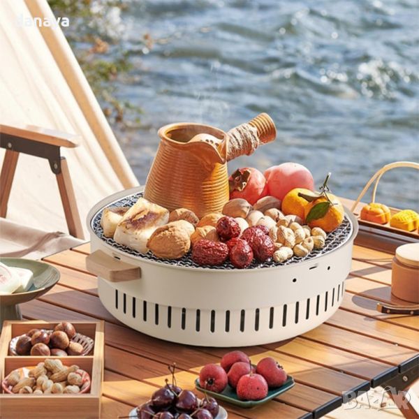 Къмпинг тенджера за барбекю на дървени въглища. Барбекю тенджерата е многофункционален кухненски уред, предназначен за приготвяне на храна на открито и на закрито, като имитира вкуса и аромата на традиционното барбекю. Основните й характеристики включват: