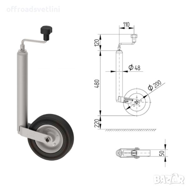Опорно маневрено помощно колело 48 мм за ремарке колесар каравана