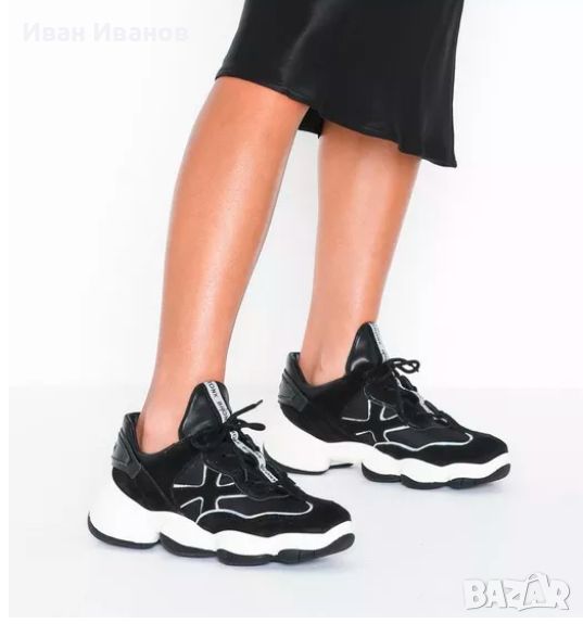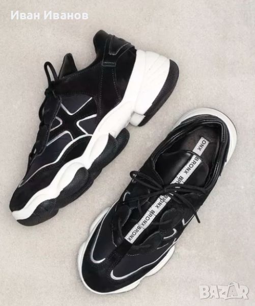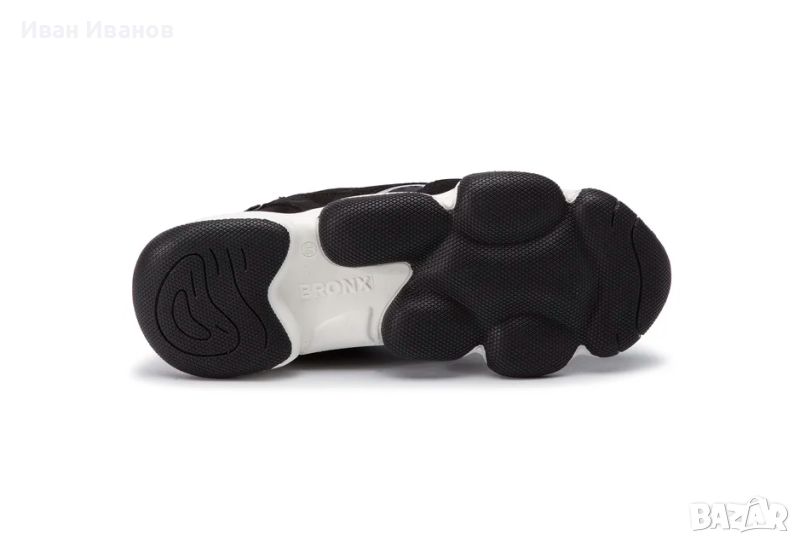 Модни маратонки от Bronx в черен велур със специална , масивна подметка. Горната част е изработена от велур със сребристи метални текстилни вложки и сребристи метални кантове. Специалната връзка придава допълнителен характер. Вътрешната страна е частично подплатена с кожа, а кожената стелка може да се свали. Има лого на Bronx на езика и отзад. Носете тези маратонки „татко“ с изрязани широки панталони.