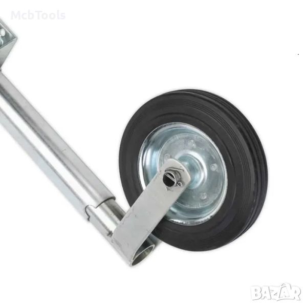 - Изработено от висококачествена поцинкована стомана, опорното колело е здраво и устойчиво на ръжда с максимална товароподемност до 150 кг, което го прави подходящо за малки и средни ремаркета и каравани