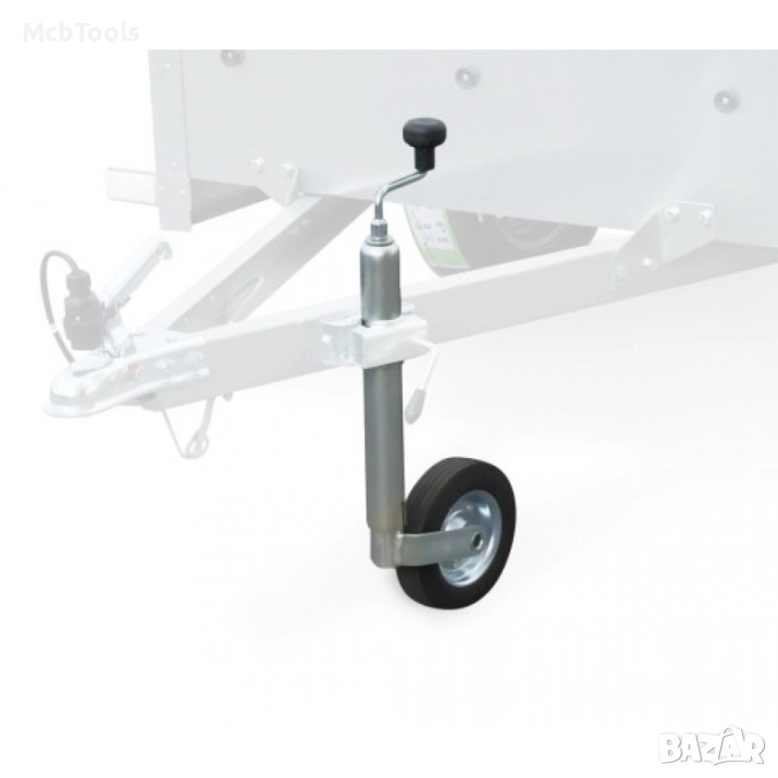 - Опорно колело за ремаркета и каравани. Стабилната кръгла стоманена манивела с тягов блок за лесна работа. Поцинковани или горещо поцинковани за висококачествена