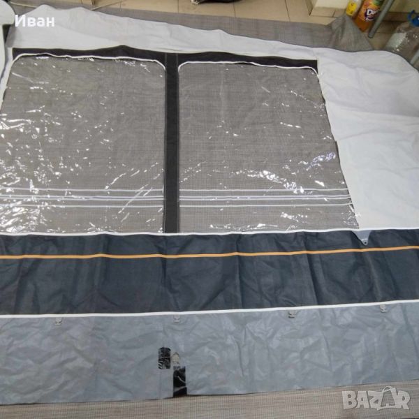 пространство.Може да се използва за спалня за кухненски кът или просто за склад.Снабден е с два прозореца и с комарник.С двоен цип позволяващ страницата на форселта да може да остава като преградна стена с врата към анекса или да бъде свалена изцяло. Анекса е като нов.