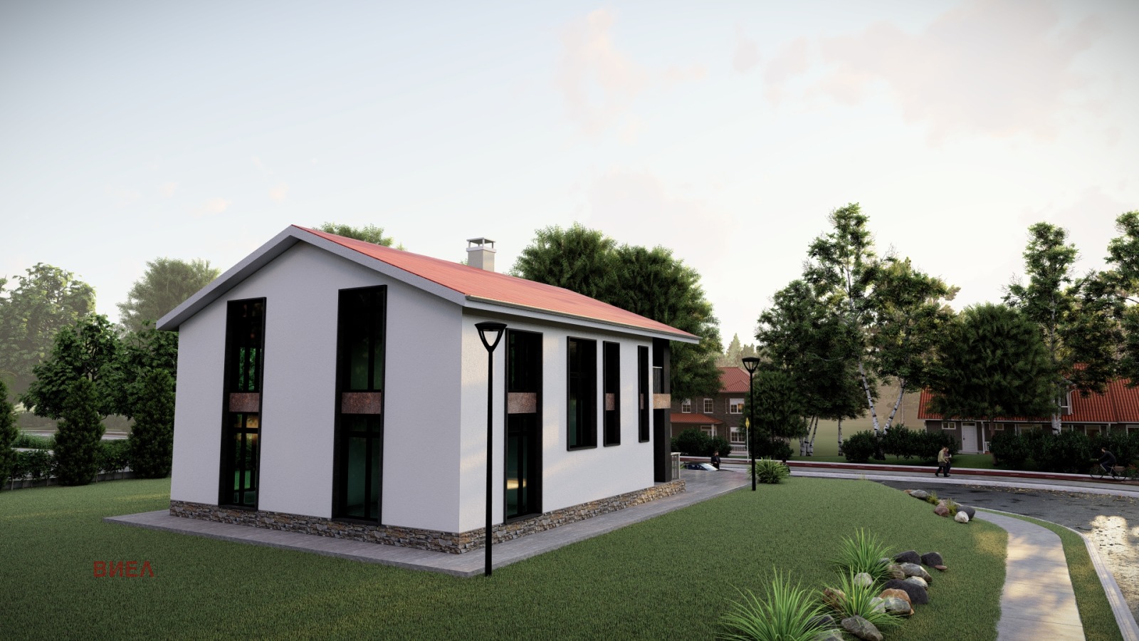 Местоположение :с.Оризари НОВА САМОСТОЯТЕЛНА КЪЩА с АКТ 14 !!! РЗП 262кв.м на два етажа в парцел 442кв.м. Сградата е монолитна със стоманобетонова конструкция, хидро и термоизолиран фундамент, тухли Винербергер, дограма PVC 36мм тип 'Четири сезона'. Покрив - Масивна дървена конструкция от ребра с височина 23см и дебелина 10см., панели пенополиоретан Тип 'Щампована керемида'. РАЗПРЕДЕЛЕНИЕ по проект: ПЪРВИ етаж - голям хол с кухненски бокс от 52кв.м ,баня и тоалетна ,2 спални коридор,веранда .ВТОРИ етаж- една баня с тоалетна,хол с бокс и две спални,тераса. Ще бъде издадена на шпакловка,замазка и тапа. Селото се намира на десния бряг на р. Марица, на 5 км западно от Пловдив.Перфектна локация, бърз достъп до града, спортна база ,в непосредствена близост до новия увеселителен парк 'Fun Park Plovdiv UTV Kids Track', идеално място с гледка към Родопите.Лице за контакт-Ева Цекова-0882761640