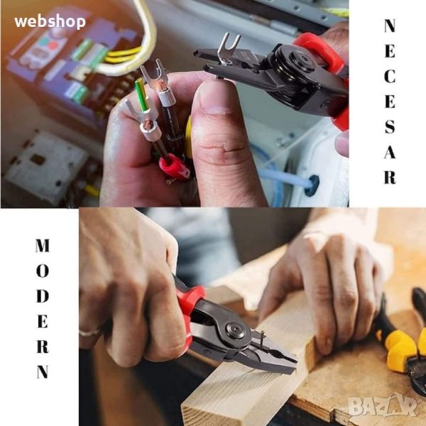 Комплектът 5 в 1 многофункционален стоманен инструмент с клещи, ножици, резачка за кабели, кримпване и разкопчаване е основен инструмент за всеки електротехник или домашен майстор. Той съчетава всички необходими функции в един компактен и лесен за използване инструмент. Със своята издръжливост, безопасност и универсалност, този инструмент ще бъде вашият надежден партньор при работа с електрически кабели и проводници.
