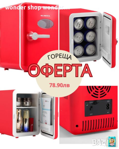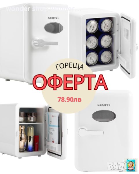Мини преносим хладилник KUMTEL 🌟 Идеален за пътуване,къмпинг и съхранение на козметика! 💄