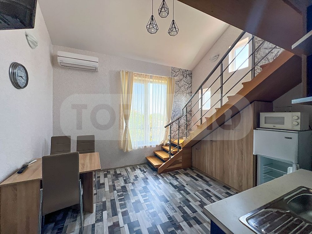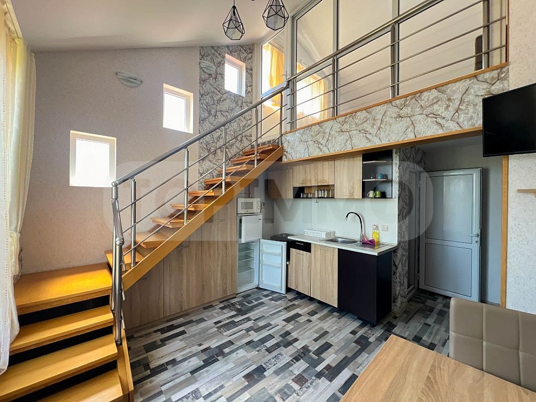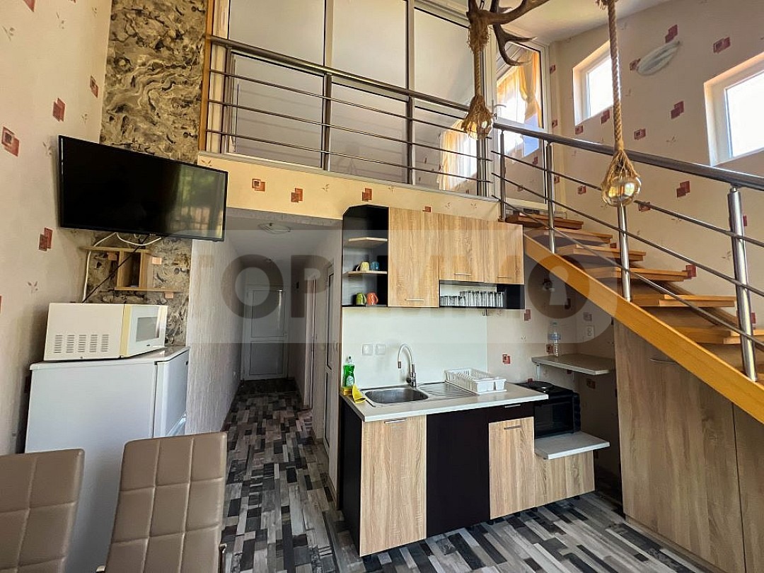 Триетажната къща се състои от 4 апартамента с отделни входове и всеки със самостоятелна баня с тоалетна. Два от апартаментите се намират на партерен етаж и са двустайни, а другите два са мезонети на втори етаж с вътрешно стълбище и са тристайни.