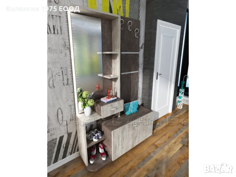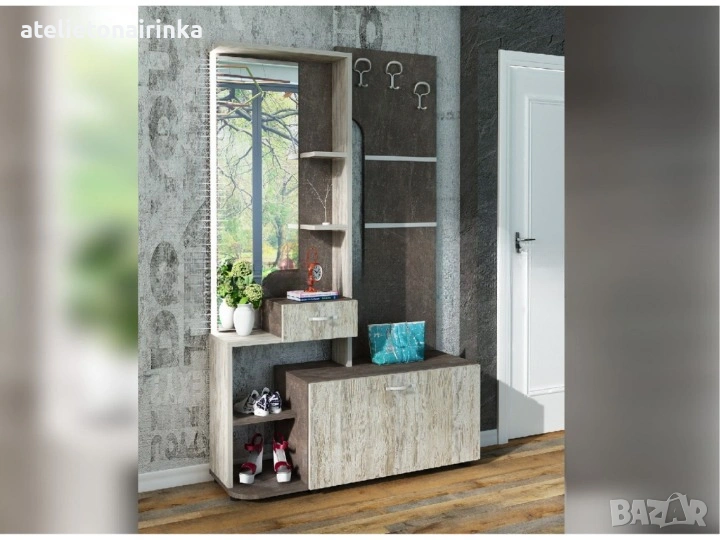 Портманто с LED осветление, отворени рафтове, чекмедже,три двойни закачалки и огледало.