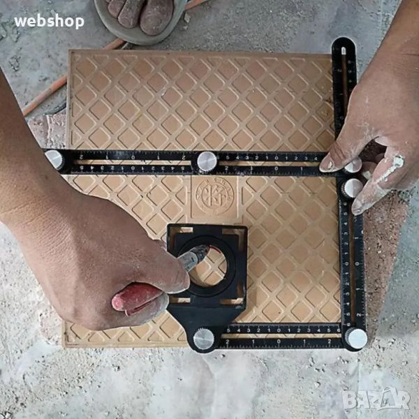 Линийката на шаблона се състои от шест еднакви елемента, движещи се един спрямо друг. Специално устройство за маркиране на отвори с различни диаметри (21 мм, 41 мм, 46 мм) е прикрепено към последния елемент чрез завъртане на линийка.