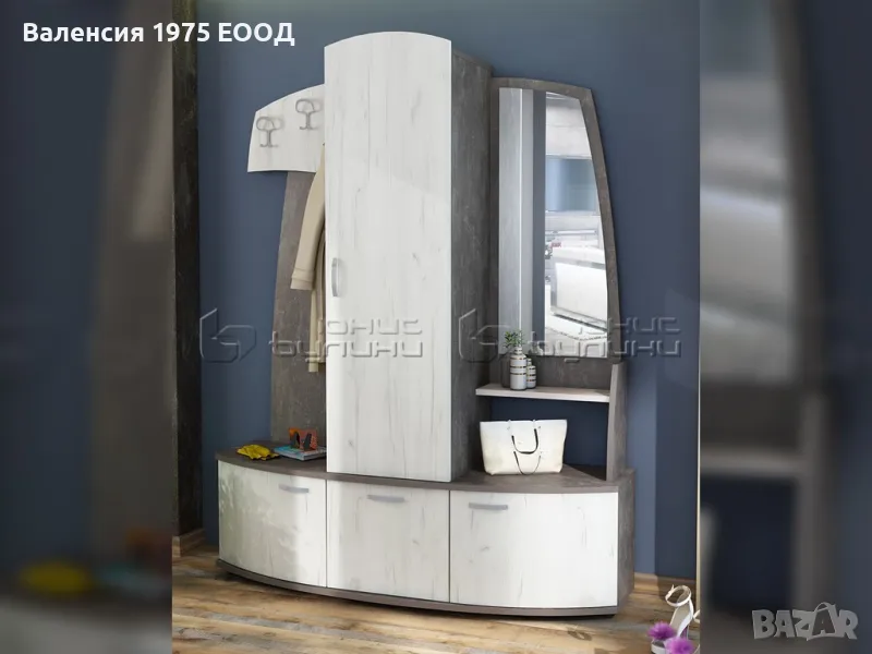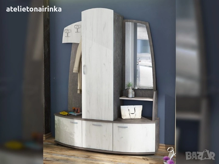 Портманто с гардероб, три шкафа, три двойни закачалки и огледало.