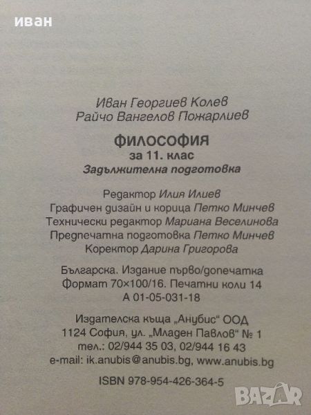 Философия за 11.клас - И.Колев,Р.Пожарлиев - 2001г. → Обява 46372080