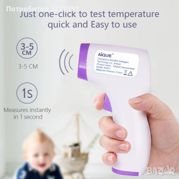Безконтактен инфрачервен,дигитален,гласов медицински термометър за бебета и възрастни.Описание: