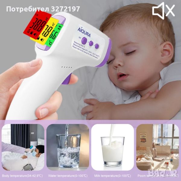 Безконтактен инфрачервен,дигитален,гласов медицински термометър за бебета и възрастни