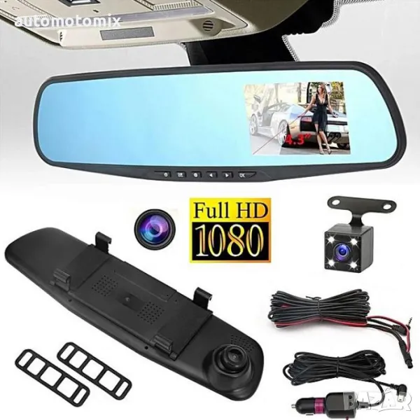Видеорегистратор в огледало 4.3" монитор - 1 брой.