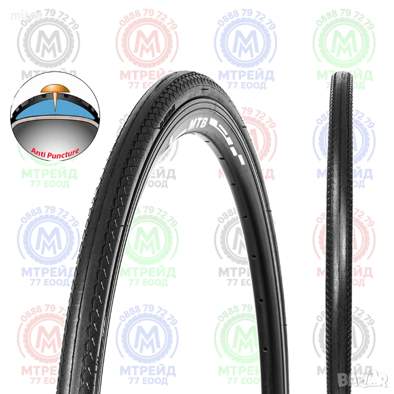 - Надеждна защита от пробиване: Вграденият допълнителен слой ефективно спира остри предмети (като бабини зъби, видии, пирони) да проникнат в корпуса и да повредят вътрешната гума, осигурявайки спокойствие по време на каране.