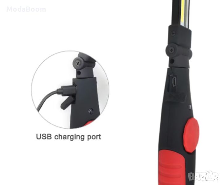 Материал: ABS пластмаса; Цвят на корпуса: Черен и различни цветове; LED модел: СОВ лента; Мощност: 5 W; Светлинен поток: 250 Lumens; Регулиране на светлината: Димер; Чупещо светлинно тяло: 150 градуса; Чупещо рамо; Мощен магнит в долната част; Живот на СОВ диода: 100,000 часа; Капацитет на батерията: 3000mAh (сменяема тип 18650); Micro USB порт за зареждане; Червен LED индикатор за зареждане; USB към Micro USB кабел за зареждане: Включен; Размери: 34 / 3.9 / 3 см; Тегло: 160 грама.