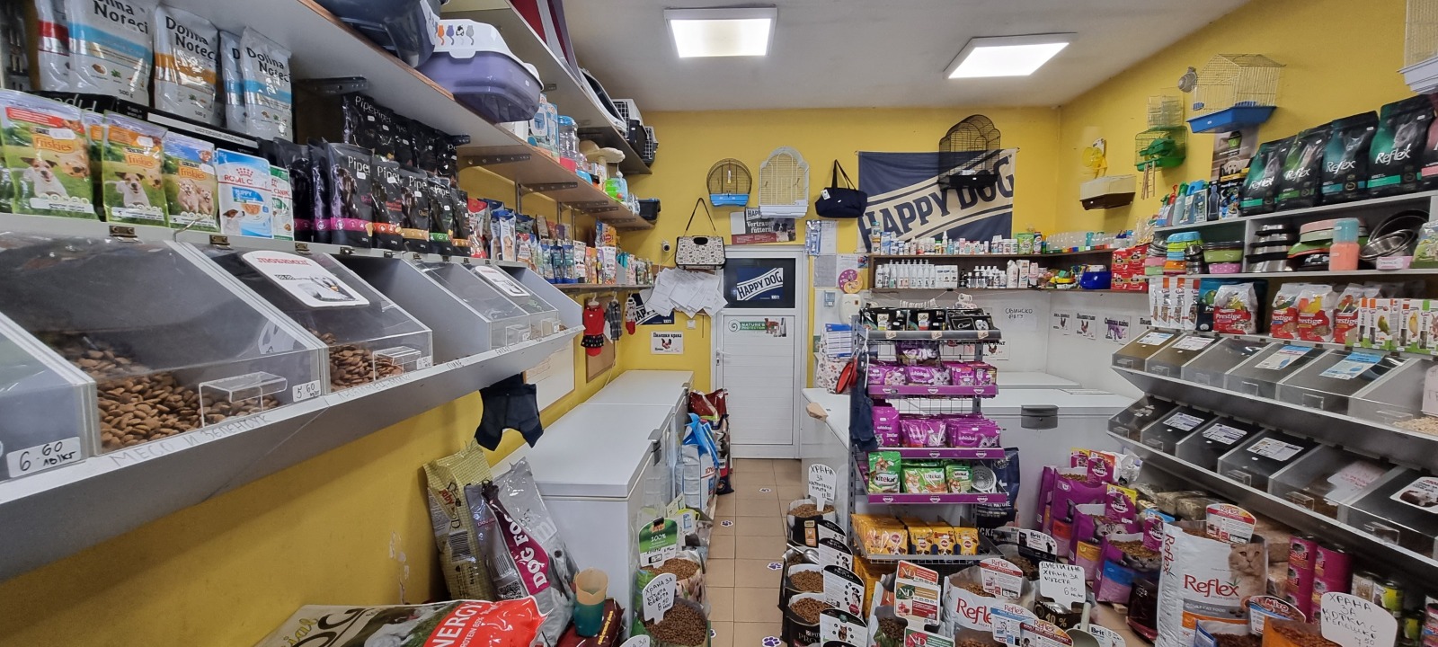 Продава се разработен бизнес. Магазин за храна за животни на партерен етаж със застроена площ от 32 квадратни метра., състоящ се от търговска зала, коридор, складово помещение и санитарно помещение.