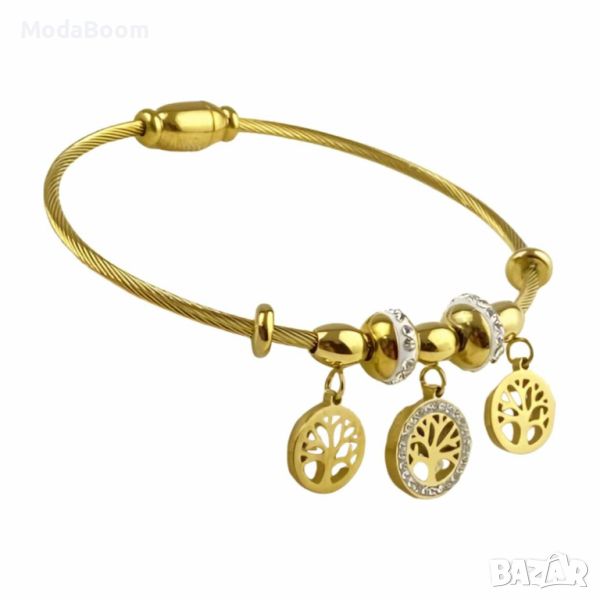 ПРОМОЦИЯ🏷️Дамска твърда гривна от медицинска стомана с висулки Дървото на живота и елементи с камън → Обява 46374423
